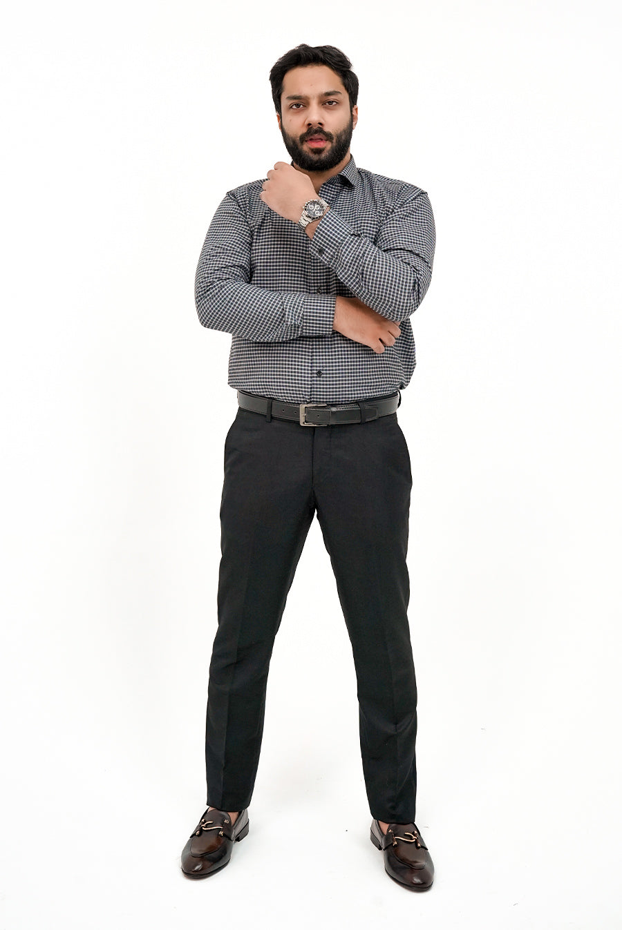 Refined and versatile, this Black and Grey Check Formal Shirt is a wardrobe essential for the modern professional. Crafted from soft, breathable cotton, it provides day-long comfort while maintaining a sharp and structured appearance.
