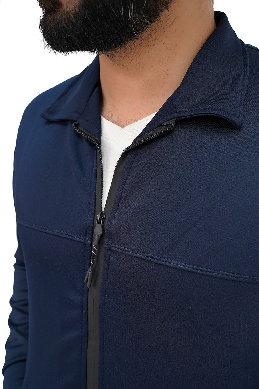 Design: Solid pattern with stand collar, athletic style